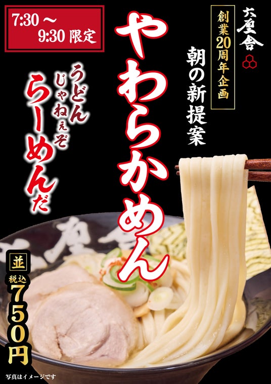 つけめん専門店「六厘舎」は2025年4月18日に創業20年を迎え、東京駅東京ラーメンストリート店限定で朝限定商品「やわらかめん」を販売致します。