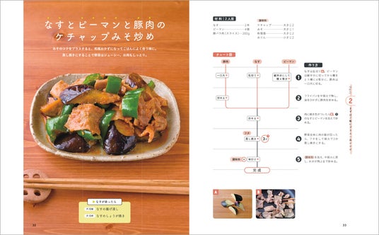 そこで、本書は料理をつくる人が考えている頭の中をチャート図で見せ、全体の作業内容を理解できるようにしました。つまずきがちな表現「きつね色」「焼き目」「透き通った」など、どんな状態かを写真でわかりやすくします。