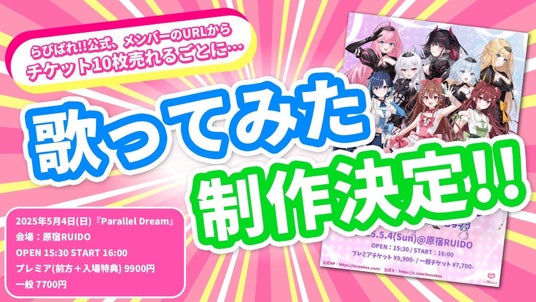 今回の「Parallel Dream」では、動員300人達成を目標にした特別チャレンジ企画を実施しています。このチャレンジでは、チケットが10枚売れるごとに、公式から「歌ってみた」動画が1本制作されるという、ファン参加型のプロジェクトが進行中です。すでに、『らびぱれ!!』『クインテ』両グループともに、第2弾の「歌ってみた」動画制作が決定済み。このプロジェクトは、あなたの「応援したい」という気持ちが、直接コンテンツというかたちで反映される、まさに“応援が未来をつくる”企画です。