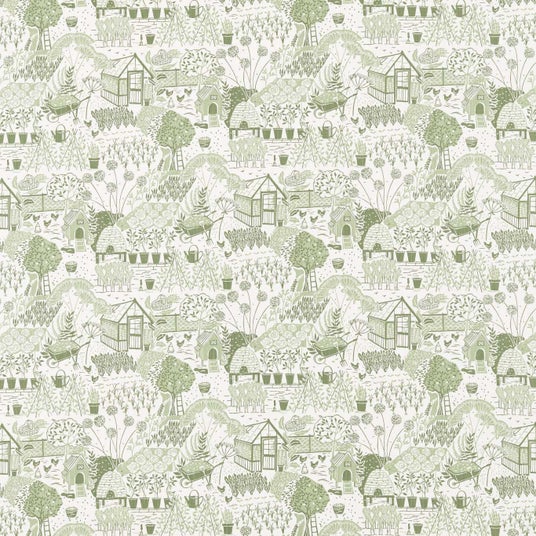 The Allotment(ジ・アロットメント):菜園や温室を刺繍で描いた物語性あふれるデザイン(生地)