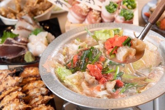 ぷりぷりの牛もつに、秘伝の濃厚味噌または特製醤油スープを合わせた本格もつ鍋。さらに明太子を“乗せ放題”で楽しめる贅沢仕様は、博多好きなら一度は食べてほしい逸品です。