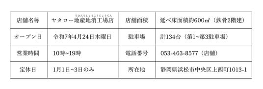 株式会社ヤタロー(静岡県浜松市 代表取締役 中村伸宏)は、4月24日(木)に『ヤタロー工場直売店』を移転リニューアルし、『ヤタロー地産地消工場店』を静岡県浜松市中央区上西町にオープンします。