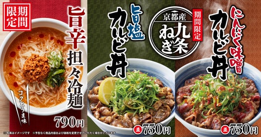【焼きたてのかるび】期間限定!“京都産九条ねぎのカルビ丼”と“担々冷麺”を4月24日(木)より販売