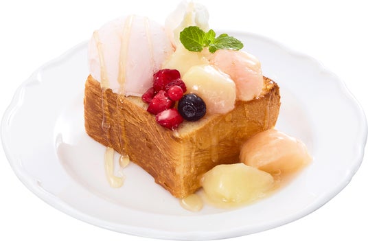 同時に販売する「~オリーブオイル香る~ ジョリーパスタのごろっと白桃のハニートースト」は、オリーブオイルとはちみつをしみ込ませてサックリと焼き上げたデニッシュに、白桃のコンポートとソルベ、ミックスベリーをトッピングした商品です。別添えのフランボワーズソースをかけて、やさしい酸味をプラス。白桃ソルベは、ジェラート(バニラ、チョコ、ストロベリー)に変更もできますので、お好きなフレーバーでどうぞ。