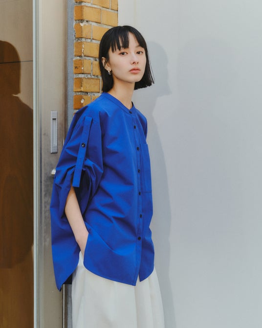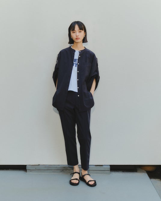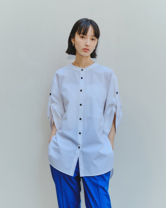 ノーカラーなので夏でもすっきりと涼やかに着用いただけます。