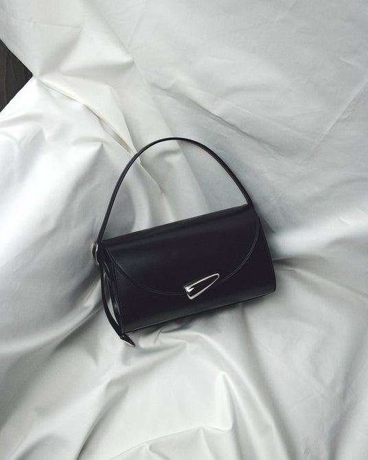 シルエットはミニマルながら、自然な艶感のある牛革を使用し、厚みとハリ感のある素材を使用することで上品さを演出しています。