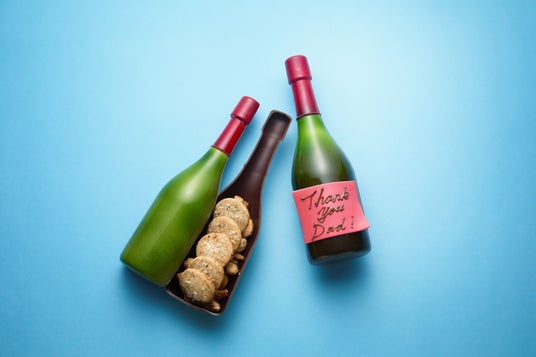 スイーツがあまり得意でないお父さんたちにも喜んでいただけるように、ワインボトル型のチョコレートもご用意いたしました。このチョコレートの中には、コンテチーズ、ローズマリー、ブラックペッパーを練り込んだ大人向けの味付けのサブレと、ほんのりとした塩気がアクセントのメープルカシューナッツが詰まっています。コンテチーズの濃厚な風味とローズマリーの爽やかな香り、ブラックペッパーのピリッとした刺激が絶妙に調和したサブレと、メープルシロップの甘さとカシューナッツのクリーミーな食感がくせになるメープルカシューナッツの、ついつい食べ進めてしまうコンビネーションです。コーヒーや紅茶と一緒におやつとしても、お酒のお供としても楽しめる一品で、お父さんのリラックス時間を贅沢に彩ります。カスタマイズしたメッセージのリクエストも承ります。
