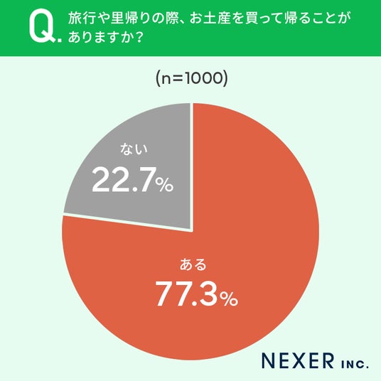 77.3%の方が旅行や里帰りの際、お土産を買って帰ることが「ある」と回答しています。