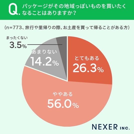 続いて「旅行や里帰りの際、お土産を買って帰ることがある」と回答した方に、パッケージがその地域っぽいものを買いたくなることはあるか聞いてみました。