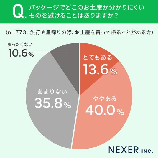 また「旅行や里帰りの際、お土産を買って帰ることがある」と回答した方に、パッケージでどこのお土産か分かりにくいものを避けることはあるか聞いてみました。