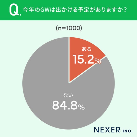 15.2%の方が、今年のGWは出かける予定が「ある」と回答しています。