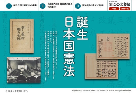 遠方の方など、ご来館が難しい方は、当館HPで公開しているデジタル展示「誕生 日本国憲法」をぜひご覧ください。平成29年に開催した特別展を再構成し、「日本国憲法」のほか、制定過程に作成された当館所蔵資料をご紹介しております。