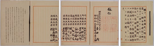 日本国憲法は、昭和21年(1946)11月3日に公布され、翌年5月3日から施行されました。公布書には、第一次吉田茂内閣の各大臣が副署しています。