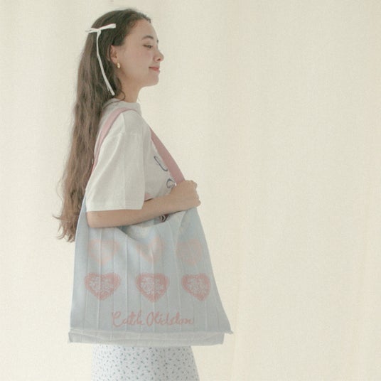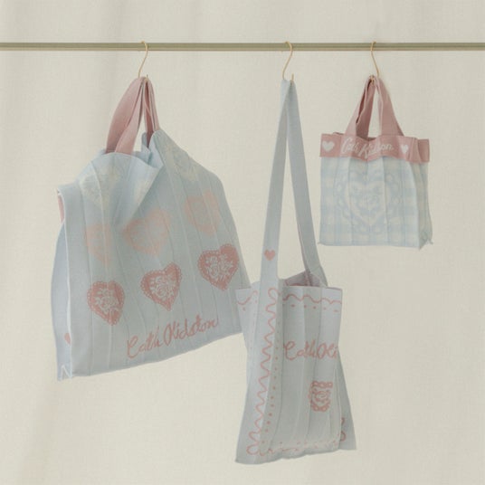 斜めがけにしたり、肩にかけたり、デイリーに使いやすいデザインのKnittyは、KNT365の代表的なアイテム。Cath Kidstonのロゴやレースハートのアイコンをさりげなく取り入れたシンプルなデザインなので、お洋服を選ばず毎日でも使っていただけるバッグです。