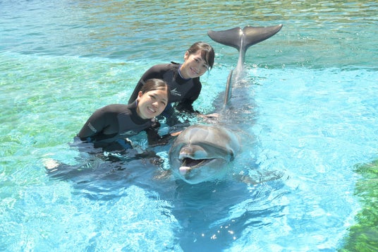 水族館「ふれあいラグーン」では、バンドウイルカと一緒に泳げるプログラム「イルカとおよごう」を実施しております。