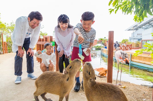 水族館「アクアミュージアム」4階フォレストリウム「森のこみち」では、「カピバラ」と「マーラ」に間近でごはんをあげたり、ふれあい体験が楽しめるプログラム「カピバラ・マーラのごはんタイム」を実施しております。「森のこみち」では、柵やアクリル越しではなく、隔てるものがない超至近距離でカピバラやマーラ、フラミンゴなどを間近で観察いただけます。生きものたちの匂い、鳴き声、息づかいなどを感じながら、生きものたちの魅力や生態を体感いただけます。