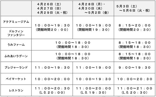 2025年4月26日(土)~5月6日(火・祝)営業時間