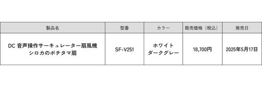 シロカ株式会社(東京都・千代田区)は、音声で操作できる扇風機「DC 音声操作サーキュレーター扇風機 シロカのポチタマ扇」をリニューアルし、2025年5月17日に発売します。