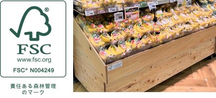 FSC認証とは、持続可能な森林活用・保全を目的として誕生した、「適切な森林管理」を広めるための国際的な制度です。当店では、青果売場で使用する一部の什器にFSC認証の木材什器を導入しています。