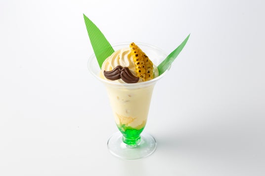 スイートコーンの甘みのあるムースとスポンジケーキの相性が良いスイーツパフェ。