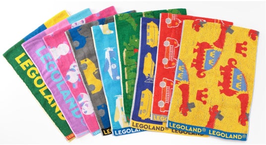 現在販売中のレゴランド(R) ・ジャパン限定デザインのカラーTシャツに加えて、国内では珍しい海外のレゴ(R)Tシャツも入荷し、30種類以上から選べます。日差しから頭を守るカラーキャップと合わせて、お気に入りの組み合わせでレゴランド(R) ・ジャパンを楽しもう!またびしょぬれエリアで必須アイテムの、レゴランド(R) ・ジャパン限定商品のビーチサンダルやフェイスタオルも販売。