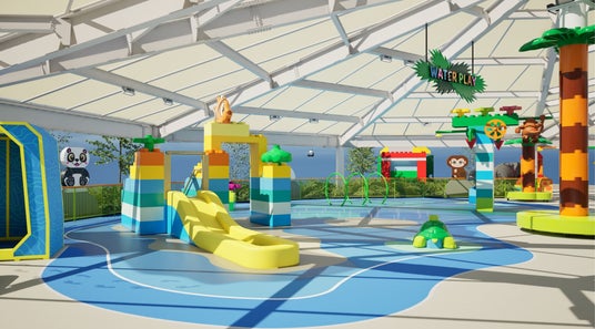 巨大な水遊びゾーン「ウォーター・メイズ」。約2,400平方メートル の広大なウォータープレイエリアで、思いっきり水遊びを楽しめます。7つの冒険ゾーンと6つのユニークなアトラクションプールが、子どもたちの好奇心と創造力を刺激。エリア内には9基のウォーターキャノンが設置され、どこにいても水しぶきが降り注ぎ爽快さ満点。さらに、レゴ(R) ブロック約32万個で作られた巨大な“ブルードラゴン”が滝の上から子どもたちを見守り、冒険のワクワク感をアップ。