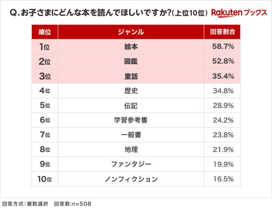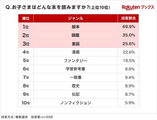 「楽天ブックス」、「こどもの読書週間」に先駆けて「子どもの読書に関する調査」結果を発表