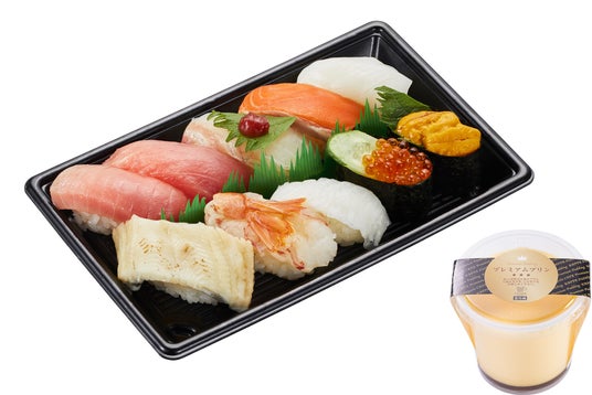 また、かっぱ寿司の人気スイーツ『プレミアムプリン』や日本橋榮太樓監修『黒みつを味わうプレミアム宇治抹茶プリン』とのセット商品も販売いたします。