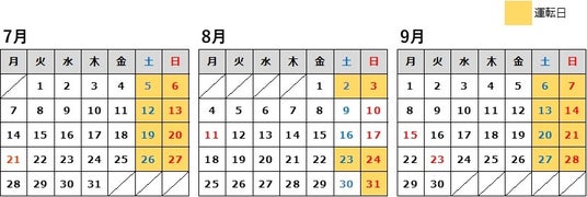 ※8月9日(土)10日(日) 16日(土)17日(日) 30日(土)は運転いたしません。