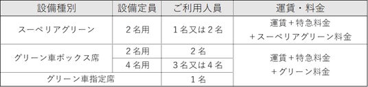 ※スーペリアグリーン、グリーン車ボックス席は区画単位で発売します。※ご利用になる人数分の運賃・料金が必要です。