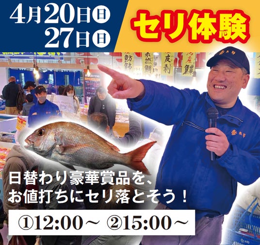魚太郎 素人セリ市開催!■ 4月20日(日) 12:00~ 15:00~