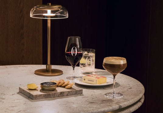 オシェトラキャビアとブリニのセット ¥9,000、エスプレッソマティーニ ¥1,400