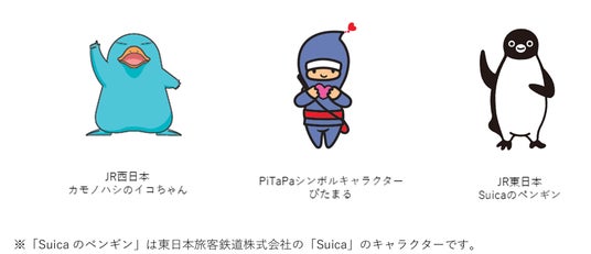 ICOCA(カモノハシのイコちゃん)、ミャクミャク、PiTaPa(ぴたまる)、Kitaca(Kitacaのエゾモモンガ)、Suica(Suica のペンギン)、PASMO(PASMO のロボット)、TOICA(TOICA のひよこ)SUGOCA(カエルくん)、nimoca(nimocaのフェレット) 、はやかけん(ちかまる)