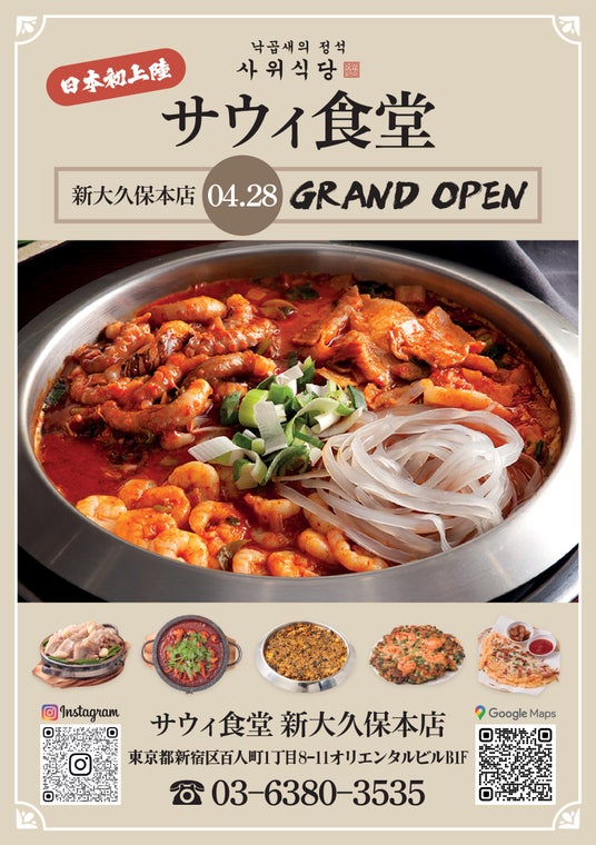 韓国No.1のナッコプセフランチャイズ『사위식당(サウィ食堂)』の、日本でのFC展開をおこなう株式会社un.s(本社:東京都新宿区百人町1丁目5-4東都ビル403 代表取締役:湯野聖加)は、サウィ食堂の日本2店舗目として、2025年4月28日「新大保本店」のオープンを決定いたしました。