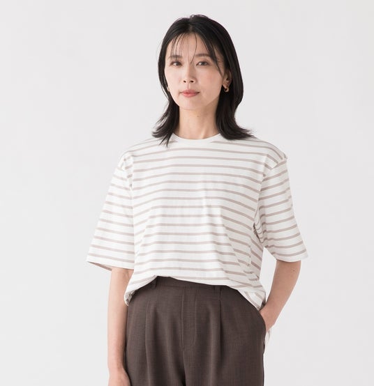 太さの違う綿糸を交互に編むことで、生地面に凹凸ができ、汗をかいたときに生地が肌と密着しにくく、肌触りがさらさらと感じられます。