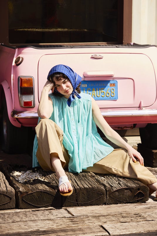 ITEM01 インドコットンクレープノースリーブフレアブラウス ¥6,996(tax in)