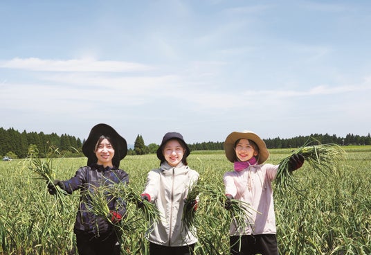 スーパーなどで目にする“にんにくの芽”。それがにんにくのどこの部分にあたるかご存知ですか。実は、にんにくが花を咲かせるために伸ばす「花茎(かけい)」部分を「にんにくの芽」と呼ぶのです。春になって暖かくなると、花茎はぐんぐんと生長。やがて、淡い紫色の花を咲かせます。一方、植物が花を咲かせるためにはたくさんのエネルギーが必要です。芽を摘むことで、土の中のにんにくに栄養が送られ、大きく育つようになるのです。そのため、芽摘みは欠かせない作業とされています。摘みたての芽はみずみずしく、シャキッとした歯ごたえと、にんにくらしい香り・旨みが特徴です。