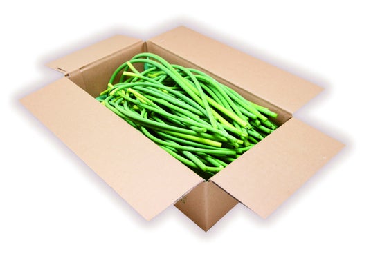 一般に流通しているにんにくの芽のほとんどは中国産で、国産はわずか1.23%程度※といわれています。そもそも国産にんにくの栽培地で有名な東北地方では芽が伸びる前に収穫期を迎えるため、芽を摘む必要がないともされています。また、中国ではにんにくの芽用に品種改良されたものも栽培しているそうです。私たちが国産にんにくの芽を目にする機会が少ないのはそんな理由からです。さらに有機栽培されたものとなると、ほとんど目にすることは無いといっても過言ではないでしょう。健康家族では、化学的な農薬や肥料に頼らない有機にんにくの栽培に20年以上取り組み続け、毎年のようにこの希少なにんにくの芽をお届けしているのです。※東京都中央卸売市場・統計情報検索結果(令和6年)