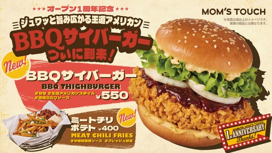 MOM'S TOUCH TOKYO(本社:東京都渋谷区、以下:マムズタッチ)は、日本上陸1周年を記念し、2025年4月18日(金)より、過去に実施した消費者試食アンケートで満足度1位・2位を獲得した「BBQサイバーガー」と「ミートチリポテト」の2商品をレギュラーメニューとして新たに発売します。
