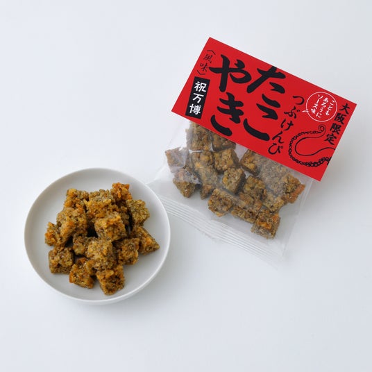 プレゼント限定品『つぶけんぴ(たこやき風味)』現在、大阪店限定で販売中の「つぶけんぴ(たこやき風味)」。その限定のお味を、皆様にもお召し上がりいただきたいという思いから、この度、プレゼント品としてご用意しました。芋けんぴの甘み、ソースの旨み、スジアオノリの香りをお楽しみください。