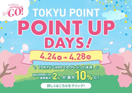 TOKYU CARDクレジット決済で購入すると、通常税込み100円につき最大2%のポイントを付与するところ、対象期間中は最大10%、TOKYU POINT CARDは税込み100円につき必ず貯まるポイントが1%から5%にアップします