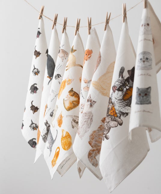 大きめリネン100%ハンカチ キャット&ドッグ 43×43cm