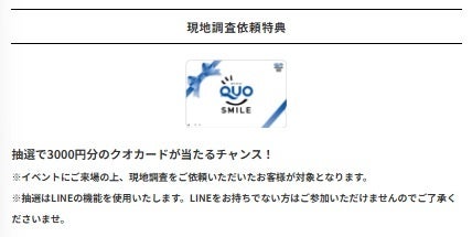 来場&現地調査依頼で3000円分のクオカードが当たるチャンス!