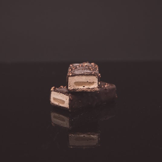 ダヴィット・ヴェスマエルが挑んだのは、ラ・メゾン・デュ・ショコラのアイコンである複雑で気品高い味わいのダークチョコレートガナッシュをアイスのテクスチャーで表現することでした。濃厚なチョコレートは五感に響く味わいを届け、メゾンのアイデンティティに忠実な仕上がりになっています。ミルク感とまろやかさが口の中にふわっと広がり、その後バランスの取れた苦味が花開きます。ミルクと生クリーム、そしてカカオ80%のダークチョコレート・クーベルチュールを使った唯一無二のクリエイション。