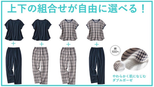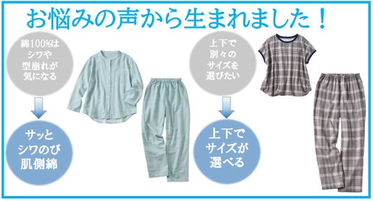 お悩みの声から生まれた『お手入れ簡単なダブルガーゼパジャマ』、『トップス(上下でサイズが選べるパジャマ)』、『パンツ(上下でサイズが選べるパジャマ)』がセシールから新発売!