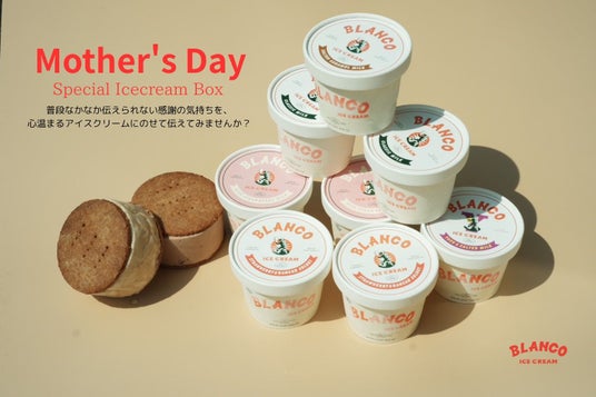子供からおじいちゃん・おばあちゃんまで、みんなで食べられるハンドメイドのナチュラルアイスクリームを製造するBLANCO ICE CREAM(所在地:熊本県山都町)は、4月18日(金)~5月9日(金)まで、オンラインストアにて2年ぶりとなる母の日向けのギフトボックスを販売します。