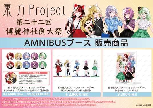 漫画・アニメのオリジナルグッズを販売する「AMNIBUS」を運営する株式会社アルマビアンカは「第二十二回 博麗神社例大祭」にて「AMNIBUS」ブースとして出展いたします。