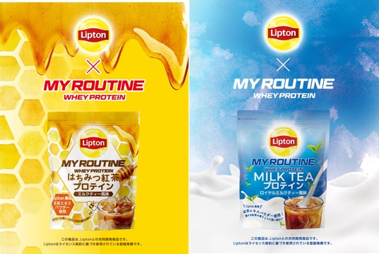 プロテインやスポーツサプリメントなど革新的な商品を展開し、健康食品部門を強化している株式会社ウエニ貿易(本社:東京都台東区、代表取締役社長:宮上光喜)は、「マイルーティーン」プロテインにおいて、リプトン・ティーアンドインフュージョン・ジャパン・サービス株式会社(本社:神奈川県川崎市中原区、代表取締役社長:高森智史、以下 リプトン)が展開する世界No.1ティーブランド*「リプトン」が厳選した紅茶エキスパウダーを使用したコラボレーション商品、「マイルーティーン リプトン はちみつ紅茶ミルクティー風味」と「マイルーティーン リプトン MILK TEA ロイヤルミルクティー風味」のプロテインを2025年5月10日(土)から全国の総合スーパー、ドラッグストア、家電量販店、スポーツショップなどで発売します(一部店舗を除く)。
