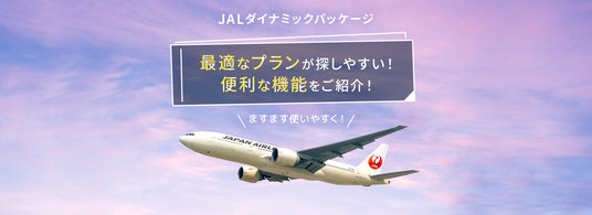 ※「JALダイナミックパッケージ」とは、「往復航空券」+「宿泊」に加え、観光地のチケットやレンタカーなど「オプショナルプラン」を自由に組み合わせて予約できる旅行商品です。