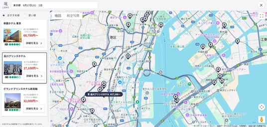 国内航空券+宿泊の基本旅行代金と合わせて、Google Map上より宿泊施設を検索できるようになりました。